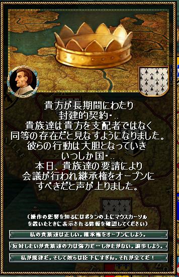 そんな1092年、アランにとって寝耳に水の一大事件が発生する。ここで継承時には表立って現れなかった貴族たちの不満が一気に爆発。何と勝手に会議を開いて継承権を選挙制にするよう公爵に突きつけてきたのである。