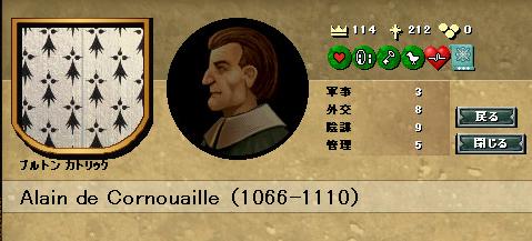 ├────────┬────────┐ | | | ゲレッグ ベネディク ホエル 1015-1085 1020-1078 1031-1089 ブルターニュ公1066-1089 | ┌────────┤ | | アラン ヤン 1066-1110 1072- コルヌアイユ伯1084-1089 グウェント司教1104- ブルターニュ公1089-1110 | ┌──────┼────────┐ | | | ジャフレズ アルズール ブランドン 1086- 1090 1092- コルヌアイユ伯1104-1110 グウェント伯1110- ブルターニュ公1110-
