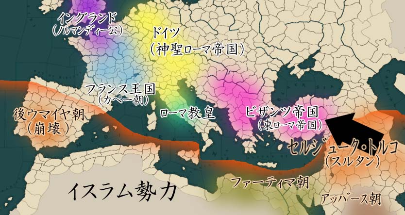 アッバース朝の崩壊により戦国時代に突入していたイスラム世界で、トルコ人達の隆起によって建国されたセルジューク朝トルコは勢力を伸ばしていた。