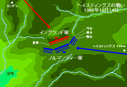 しかし、フランスに強力なライバルがいた。ノルマンディー公ウィリアム(1027〜87)である。ウィリアムはエドワード告解王が生前、次のイングランド王に彼を指名していたということを根拠にイングランド王位を要求した。彼は機動、偵察、補給などの戦術に長けた指揮官であった。