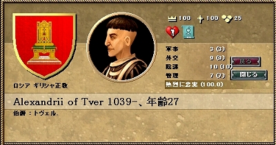 トヴェル伯は27歳の青年貴族Alexandrii。能力は軍事を除けば相応の実力がある。