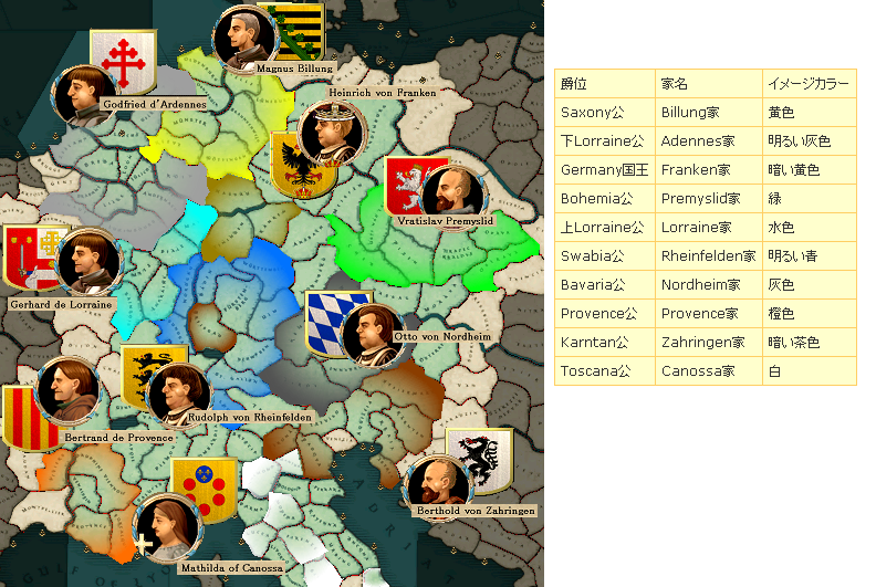 下Lorraine地帯ではFrance王、Germany王が諸侯を率いて激戦を繰り返す。
