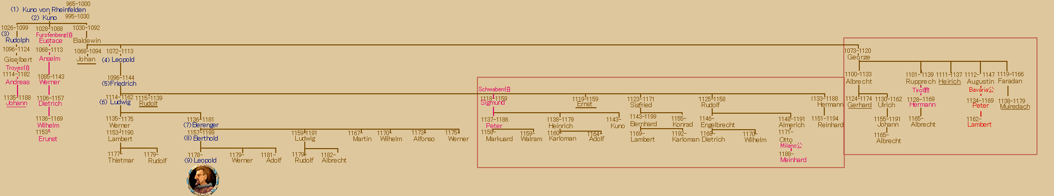 家系以外にも廷臣にRheinfelden家の娘をあてがって増やしてる。