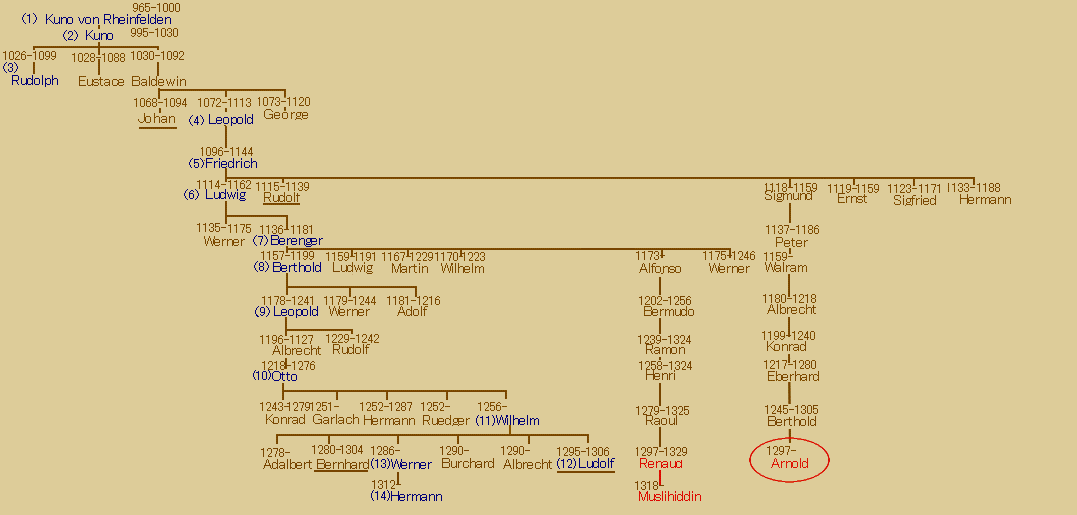 1332年、五代目Friedrichからの分家、Sigmundの流れ、Sussex大公Arnoldに
