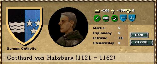 5代目Aargau伯、破門者Gotthard [1121-1162]。 黒魔術を駆使してドイツに大空位時代をもたらした悪魔として昔話に語られる。