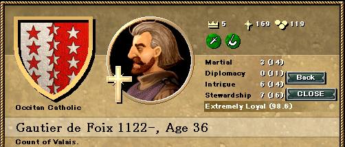 その父が教皇の特使より破門の通告を受けた時の事は今も忘れられません。父は常に冷静であり感情を表にする人物ではありませんでしたが、その時ばかりは怒り狂い、また、嘆き悲しみ、あるいは呆然とするばかりで家中の者は言葉もかけれない有様でした。十字軍に対し異を唱えた事が災いしたという言う者もあり、家中や領内は大いに騒がれたものですが、父と同じようにDauphine公やGrisons伯が破門された事が明らかになると、この破門が南隣の教皇後見人Valais伯Gautierの私怨であるという話にもなり、いくらか人心は収まったものでした。かくて邪悪なGautierの思惑と異なり父の領内経営が破綻する事がなかったのは、まさに父の20年のよき統治の賜物でありましょう。