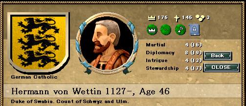 Swabia公Hermann。 簒奪者Rainhardに背きMilano公やAargau伯と戦うも破れ、Schweiz伯領を喪失した。 Bavaria大公との戦いではNurnbergを獲得。