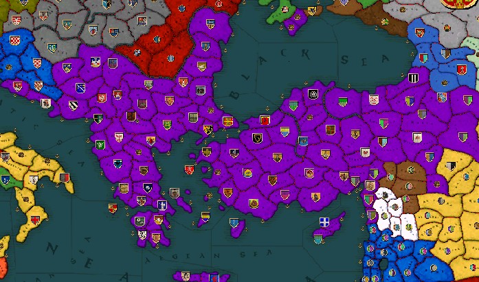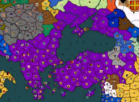 1075年1月、帝国は黒海の沿岸をほぼ制圧し、皇帝直轄領はなんと17州もあった。月の収入も100を越えた。